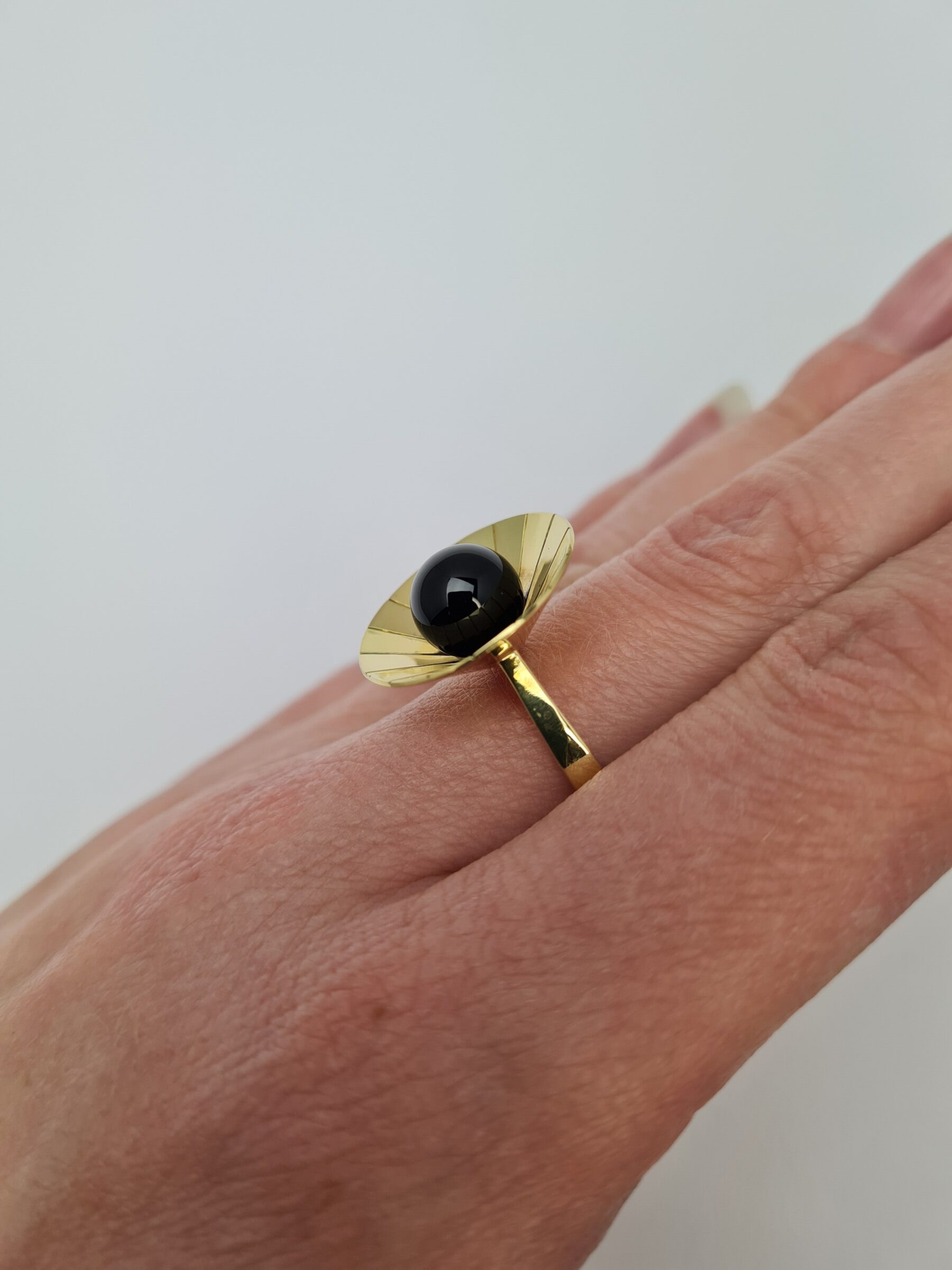 Het zwart van de Onyx geeft een mooi contrast met het goud. Maar als je het sieraad in een bepaalde hoek houdt, zie je alleen maar zwart.